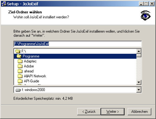 Als Speicherort von JoJoExif wird im Verzeichnis „Programme" ein